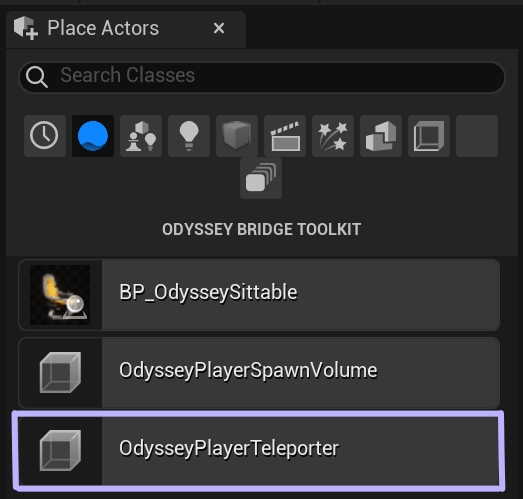 The basic tool to use to integrate the teleporting into a project is by using theOdysseyPlayerTeleportervolume class. To set up a teleporter in your level