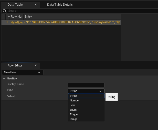 Fill your configuration data in your newly created row. Each configuration needs a Display Name, Type, and a Default Value.